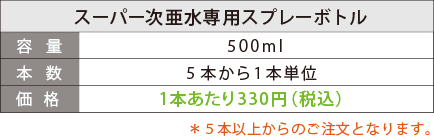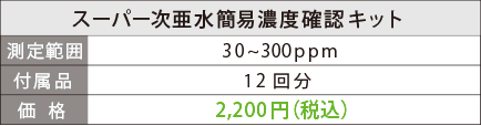 簡易濃度確認キット及び専用スプレーボトル(空容器)はスーパー次亜水と同時にご注文される場合、送料無料とさせていただきます。